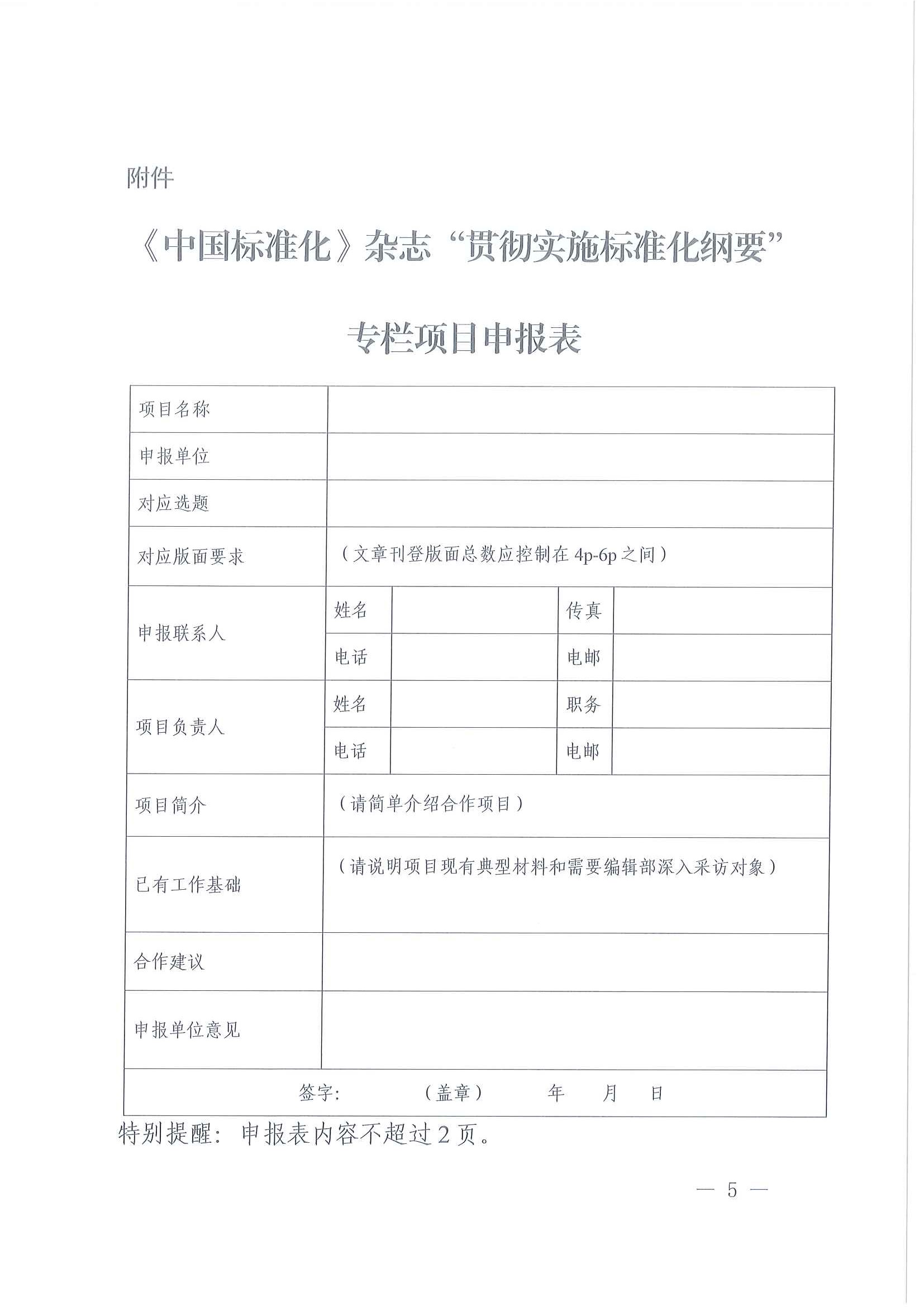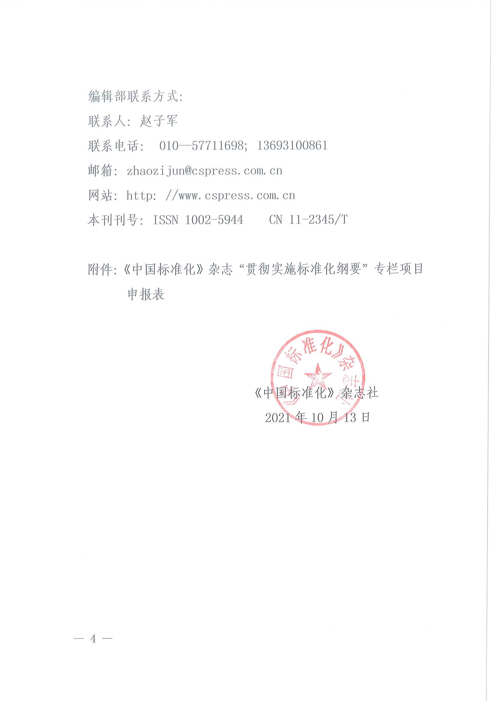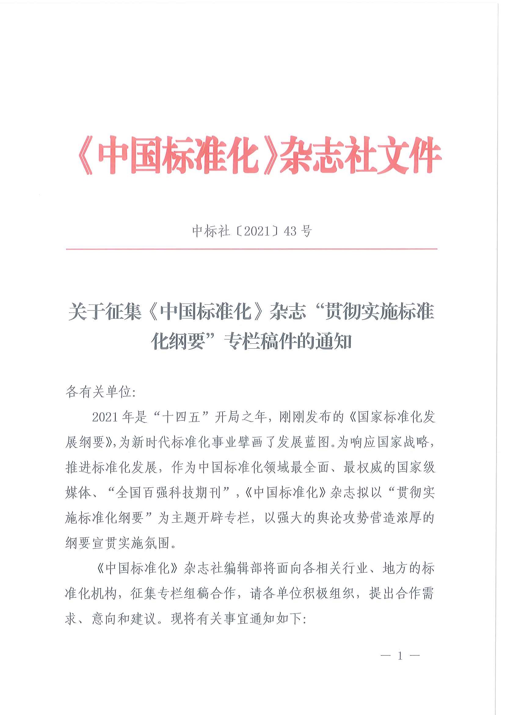 关于征集《中国标准化》杂志“贯彻实施标准化纲要”专栏稿件的通知