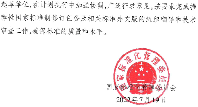 国家标准委下达2022年第二批推荐性国家标准计划及相关标准外文版计划