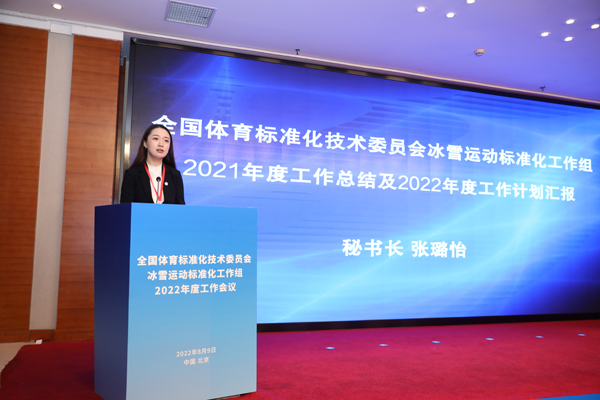 会上,冰雪运动标准化工作组秘书长张璐怡代表工作组作2021年度工作总结及2022年度工作计划汇报,会议审议通过了工作组工作细则修订草案。