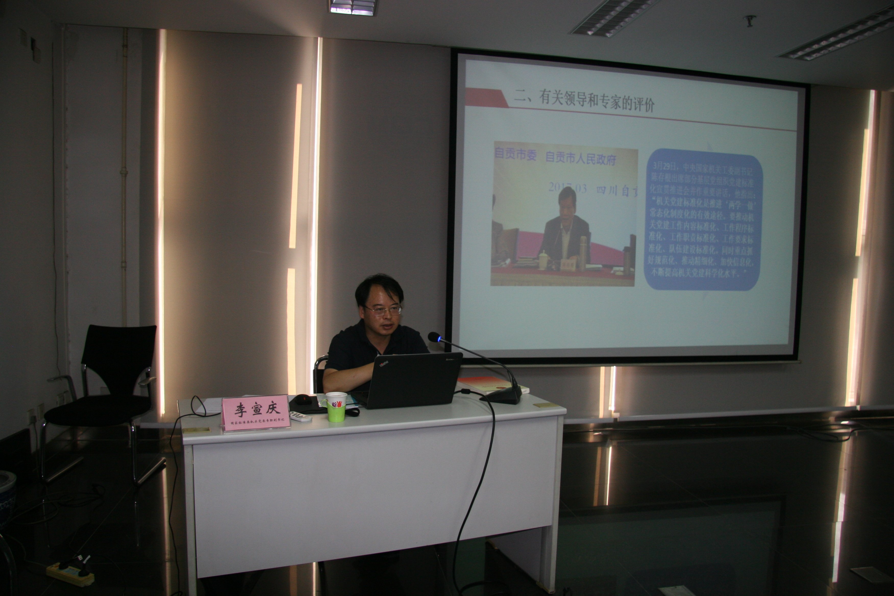 李宣庆书记从党建标准体系简介、有关领导和专家评价、标准委机关试用情况以及试点工作安排四个方面深入讲解了党建标准化试点工作工作的有关情况,对试点目标、主要任务、工作重点和《国家标准委机关全面从严治党标准体系》等进行了重点辅导,并对我协会开展党建标准化试点工作提出了具体指导意见。