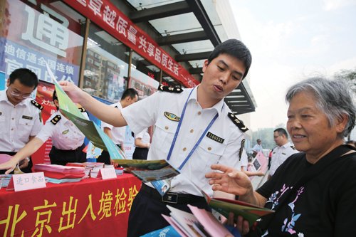 9月14日,北京检验检疫局在朝阳区甜水园街道开展“共建卓越质量 共享品质生活——2017全国质量月”活动,为推进质量提升行动鼓与呼。