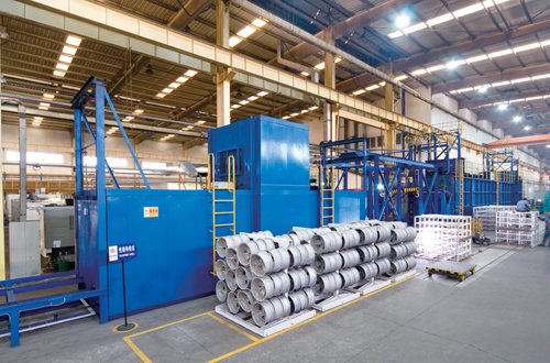 尤为重要的是,兴龙轮毂坚持技术创新和质量提升双轮驱动,强化技术对质量的支撑。具体措施包括在新产品开发阶段,依据质量先期策划组织试生产,通过试生产摸索和制定合理的量产工艺;对关键过程控制点进行充分策划,对过程检验点进行有效管控,保证关键特性稳定、受控;提升技术人员能力水平,立足现场,合理制定工艺文件和产品控制标准,测算生产节拍,实现均衡生产,质保系统严格按标准进行现场检查,工艺变更严格按流程进行评审、验证,特殊情况下的技术工艺、标准降低权限上升至总工或总经理。目前,兴龙轮毂依托两个科技中心平台,深入开展车轮轻量节能新材料与新工艺、车轮制造新装备及成套技术、车轮大型化制造技术等方向的研究。与传统工艺相比,急冷工艺产品整体强度提高10~20%,轻盈系列产品减重可达7%,产品更加安全、耐用、节能、环保。