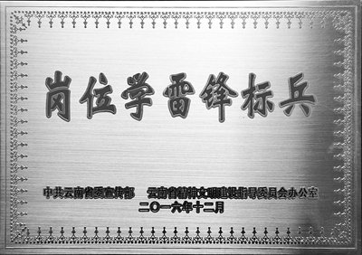 2016年,云南省计量院医学所陈浩同志被省委宣传部、省文明办评为云南省第三批“岗位学雷锋标兵”