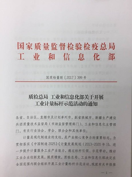 《中共中央 国务院关于开展质量提升行动的指导意见》(简称《指导意见》)印发后,总局计量司高度重视,迅速行动,在前期工作的基础上,加快与国务院有关部门的沟通协调,共商计量服务工业企业质量提升的具体举措,并于9月22日正式印发了《质检总局 工业和信息化部关于开展工业计量标杆示范活动的通知》(国质检量联[2017]399号),在全国范围内部署开展工业计量标杆示范活动,以实际行动落实《指导意见》,服务质量提升。
