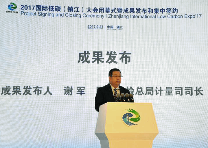 9月27日,国家质检总局计量司谢军司长一行出席2017国际低碳(镇江)大会。谢军司长在会上致辞并授予镇江市全国首个“国家低碳计量试点城市”,并见证中国计量科学研究院“低碳计量技术示范基地”的成立。镇江市委书记惠建林、市长张叶飞等领导出席会议,镇江市委常委、常务副市长裔玉乾主持会议,来自各地的低碳领域政要、客商、专家、学者等参加会议。