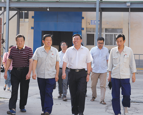 开封市质监局党组书记、局长孔羽(前排左三)到企业调研