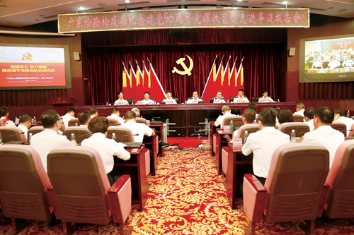 6月30日,施宗伟在广东局纪念建党96周年党课教育暨先进事迹报告会上为全体党员干部讲了《加强学习、努力奉献,做忠诚干净担当的合格党员》党课,要求广大党员干部对党忠诚、做人干净、做事担当,做党旗下的检验检疫人。