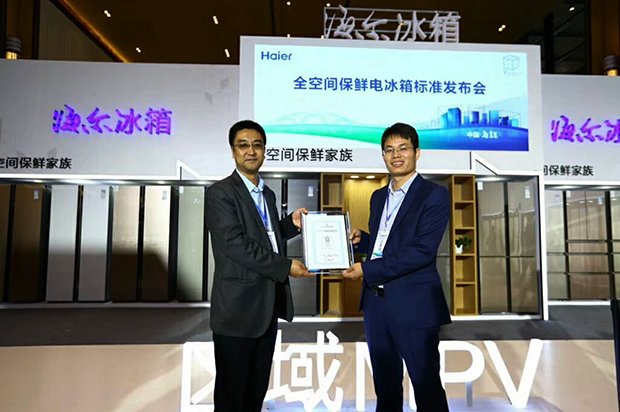 2017年10月17日中国标准化协会在乌镇向海尔公司颁发了《全空间保鲜电冰箱》标准起草证书,该标准由青岛海尔股份有限公司和中家院(北京)检测认证有限公司联合制定。 随着全空间保鲜冰箱逐渐普及,其搭载的全球领先的干湿分储以及冷冻室保鲜技术也将成为冰箱行业的主流创新方向。《全空间保鲜电冰箱》标准是行业首次制定该类产品的标准,其中规定了全空间保鲜冰箱的术语与定义,技术要求、试验方法、检测规则及标志、包装、运输和贮存。该项标准的制定不仅填补了冰箱行业关于全空间保鲜方面的空白,也让行业和用户在选购时有据可依。标准是行业通用的语言,也是消费者了解产品的重要依据,标准的出台一方面可以对市场起到规范作用,限制厂商对产品的虚假宣传,另一方面也可帮助消费者增加对产品性能的了解,增强对产品的辨别和选择能力。
