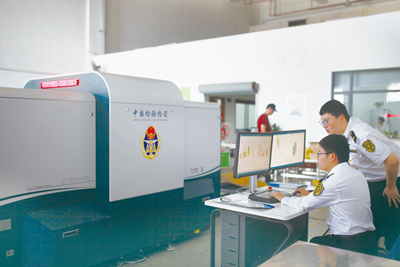 在查验环节,为提升快件全程无纸化推进力度,上海机场局上线运行了新型综合查验平台,独特之处是将原来分散的资源进行了充分的整合。在信息获取渠道上,现场检验员实现了信息查阅的便利化,改变了原来的多平台、多渠道的信息获取模式,降低了查验员工作负担。同时,新型查验平台形成了仪器设备集约化。将防护设施、反恐设备、现场检测工具进行了合理规划和整合,改变了原有的集中保管、分散使用的模式,方便了检验员在查验现场对仪器设备的使用,提升了设备利用效能,为口岸减负增效奠定了良好的硬件基础。
