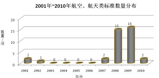 2001—2010年航空、航天类标准数量分布