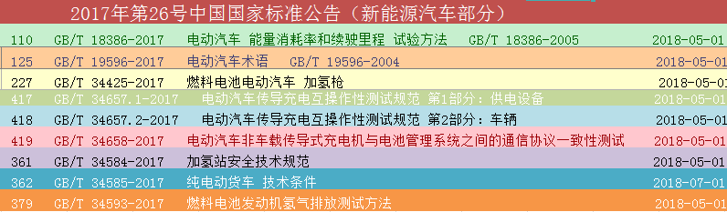 2017年第26号中国国家标准公告发布涉及新能源汽车国家标准16项