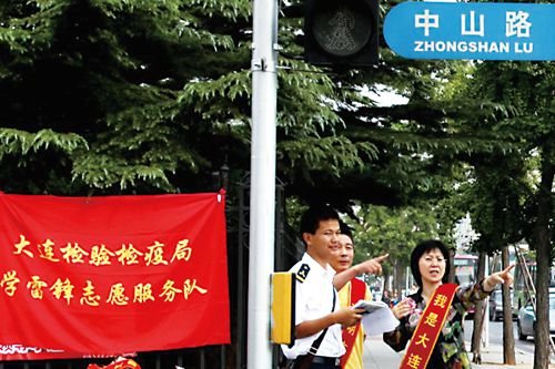 学雷锋志愿服务队走上街头维持交通秩序,为外地游客指路答疑。