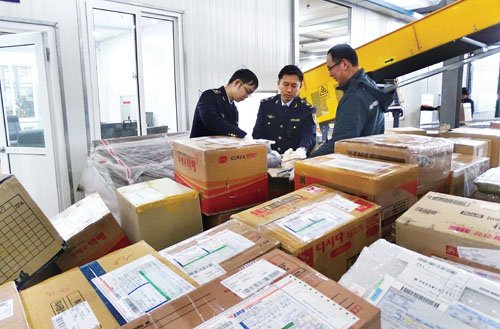 2月12日,检验检疫人员查验进境邮寄物。春节来临,通过青岛国际邮政互换中心入境的邮寄物成倍增长,山东青岛检验检疫局采取有效措施保障进境邮寄物安全、快速通关。杜 军 摄