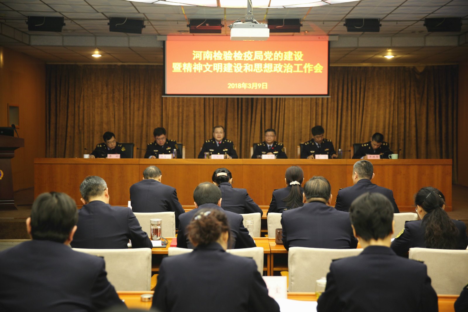 3月9日,河南检验检疫局召开2018年党的建设暨精神文明建设和思想政治工作会议。局党组书记、局长刘世远在大会上讲话,谢书升副局长主持会议,许顺华纪检组长做工作报告。局党组成员,各单位各部门主要负责人,省局各处室副处级领导干部,分片派驻纪检组组长,局机关党委委员、纪委委员,各地检验检疫局、办事处、直属单位办公室主任80余人参加会议。