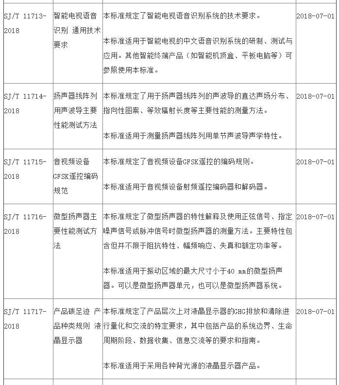 涉及《背投影显示屏拼接系统验收规范》、《液晶显示屏拼接系统验收规范》、《室内用LED显示屏多媒体系统验收规范》等显示领域多项行业标准,此类标准将于2018年7月1日实施,详细参见下表: