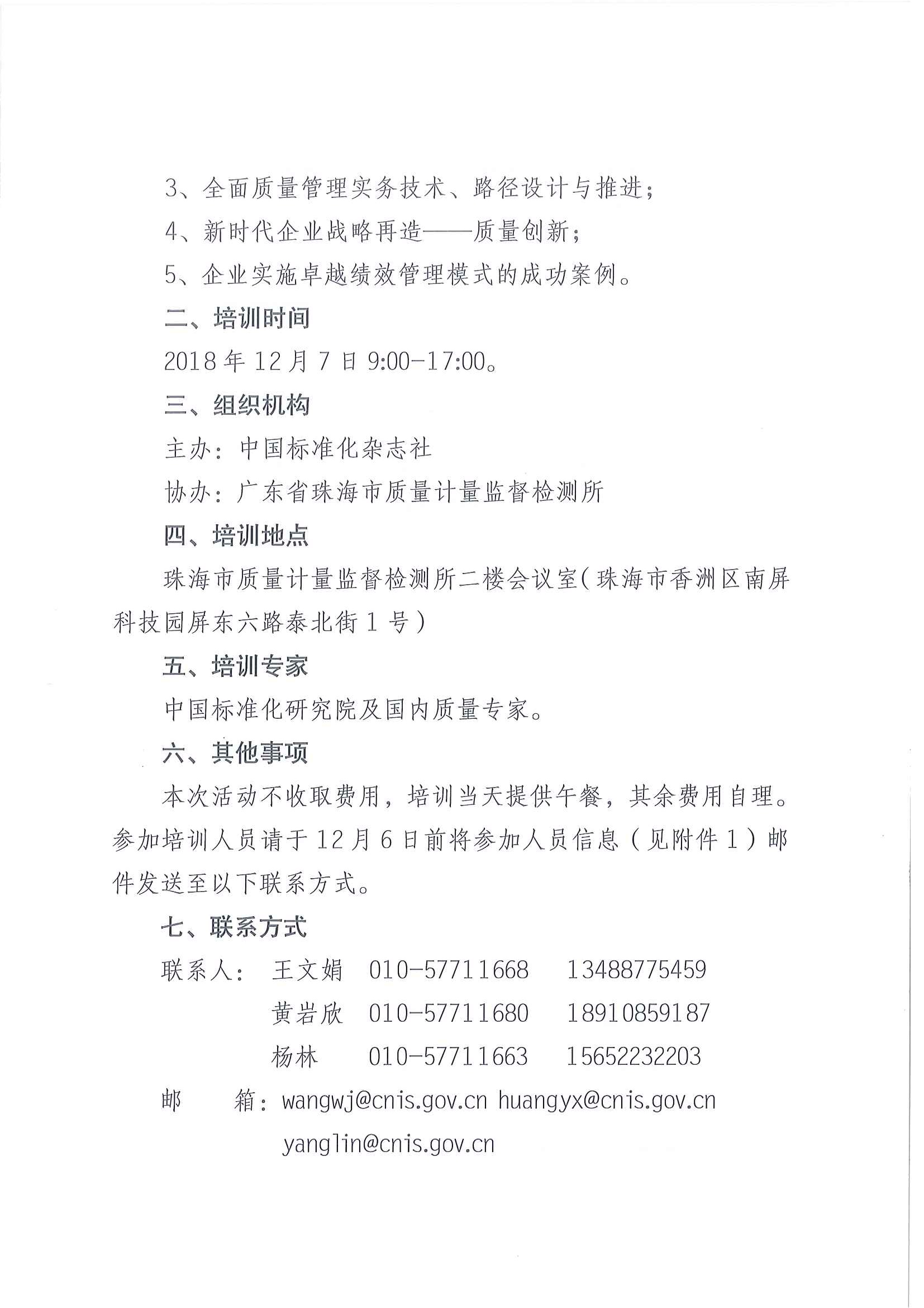 关于开展中小微企业质量管理及质量提升培训活动(珠海)的通知